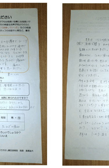 マラソンの練習を始めて、膝が痛くなり、整形外科にはお世話になってますが、接骨院・整骨院にはいったことがなかったです。娘がSNSで調べてくれて「一度、行ってみては」と勧めてくれたので。